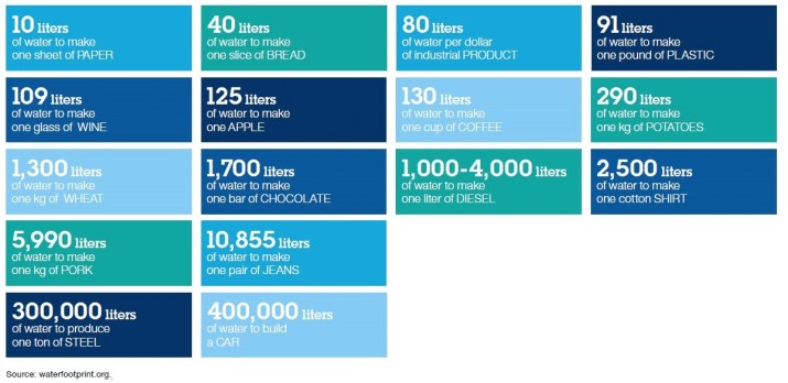 Here some example of the crazy amount of water we need to produce stuff that we use every day.
