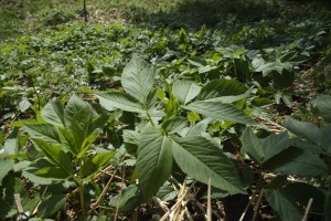 Ground elder (Aegopodium podagraria): This plant covers the ground in shady areas which get some water from time to time. Its leafs are always arranged in a group of three and the flower looks like elder, which means that it is white and it is arranged in a creeping with white umbels.